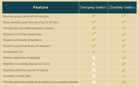 Stepping into your role as leader of your business takes time - it doesn’t happen overnight. So we have monthly or annual options available, but both require a 6 month minimum commitment - we want you to really take the time and space to get the support you need to lead your business.